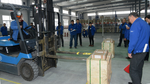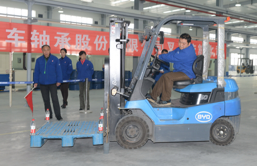 11月13日下午一點(diǎn),由公司工會(huì)和物流管理部聯(lián)合舉辦的襄軸叉車(chē)技能比武大賽正式開(kāi)始,車(chē)削分廠N11廠房被作為臨時(shí)比賽場(chǎng)地。比賽內(nèi)容分為“穩(wěn)中求勝”、“乘勝追擊”、“穿針引線”三個(gè)項(xiàng)目,根據(jù)叉車(chē)駕駛?cè)粘9ぷ饕笾贫藝?yán)格的比賽規(guī)程,難度依次增加。